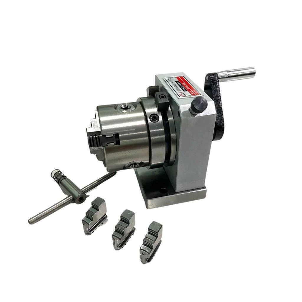 O perfilador modelo VB-PFC-II trabalha com placa universal com 02 jogos de 03 castanhas de 80mm O perfilador tem divisor incorporado com 24 divisões, a cada 15°, com tolerância de +/- 10" Com passagem pelo centro do perfilador é de 30mm (porém a passagem da placa é de 16mm).