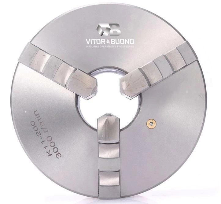 Placa universal autocentrante com 03 castanhas Corpo em ferro fundido Fixação traseira, fundo reto Rotação máxima de 1.200rpm Torque máximo de 400Nm Força de fixação de 46kN Acompanha 02 jogos de castanhas monobloco, sendo 01 jogo de castanhas internas e 01 jogo de castanhas externas Chave de aperto e parafuso para fixação no flange acompanham a embalagem Dimensões: D = 315mm D1 = 260mm D2 = 285mm D3 = 100mm H = 90mm h = 6mm Z-d = 3 x M16