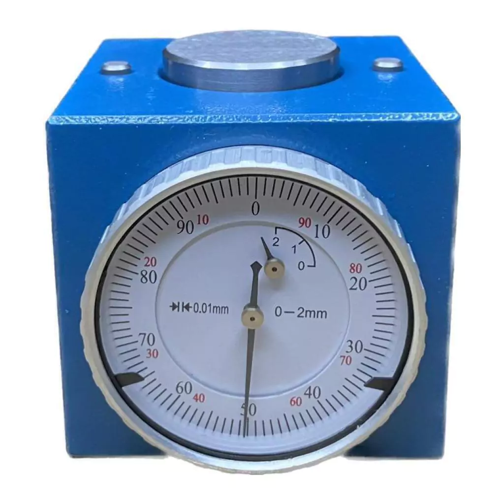 Presseter de altura com 50mm, relógio embutido e base magnética. Leitura de 0,01mm com curso de 2mm Base magnética com força de atração de 6,5lbs/pol.